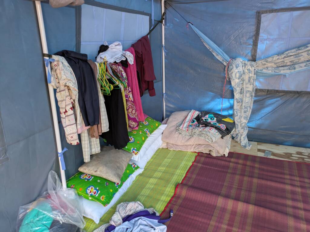We asked about food and hygiene arrangements. Srey Mao is grateful for the food but says it’s monotonous and that toilet, washing and medical facilities are very limited. She doesn’t sleep well and like many others, suffers ongoing trauma caused by the conflict.