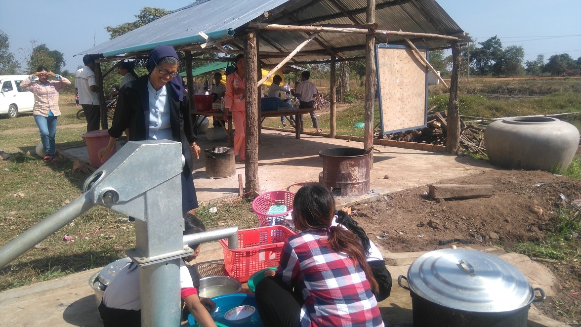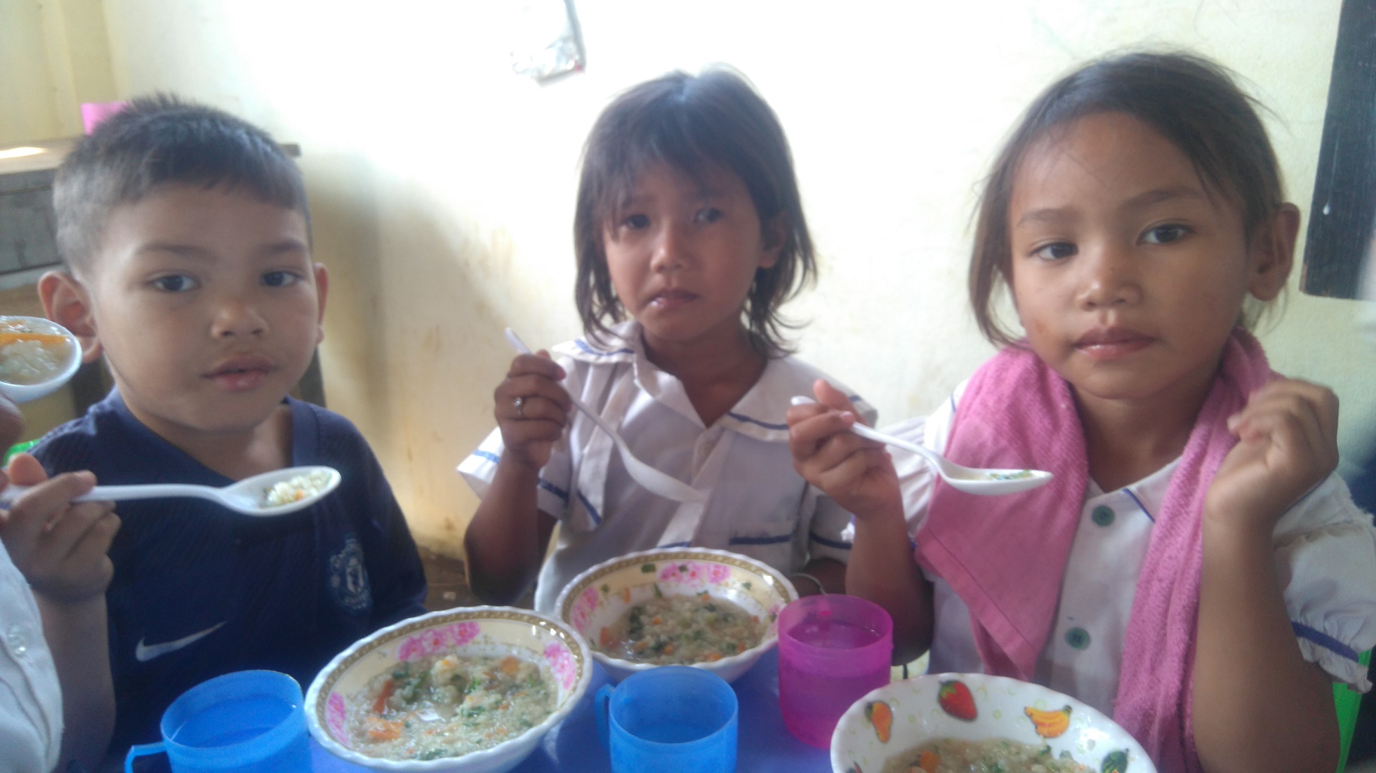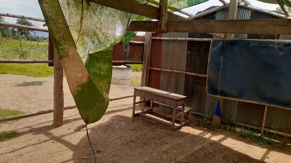 Kon Damrai Primary is a school in a remote rural location close to the Thai border where most families are very poor, living on the ‘dollar-a-day’ level. Until 2017, when Support Cambodia put in two borewells, the only water supply was a pretty but filthy pool. The wells enabled a rice soup programme to be started and the kitchenette, also funded by Support Cambodia means the feeding programme can continue all year. In addition to the 200+ pupils at the school, there is also a day care programme for 2 -5 year olds, many of whom are cared for by their grandparents, mum & dad having gone off to Thailand to find work.