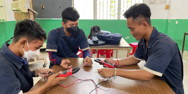 After the first year, students may specialise in one skill: currently both our Support Cambodia-sponsored students are specialising in Electricity.