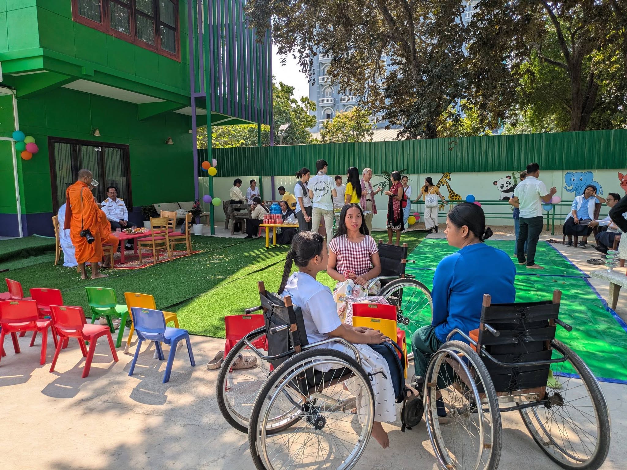 On to the opening ceremony of a new school for special needs children in Battambang city and the great honour of a) being invited to help cut the tape and b) conversation and pictures with the Venerable Socheatha, a Buddhist monk well known in the Battambang area for his community involvement and cooperative friendship with Bishop Kike over many years. And it’s only 11.30am!!!