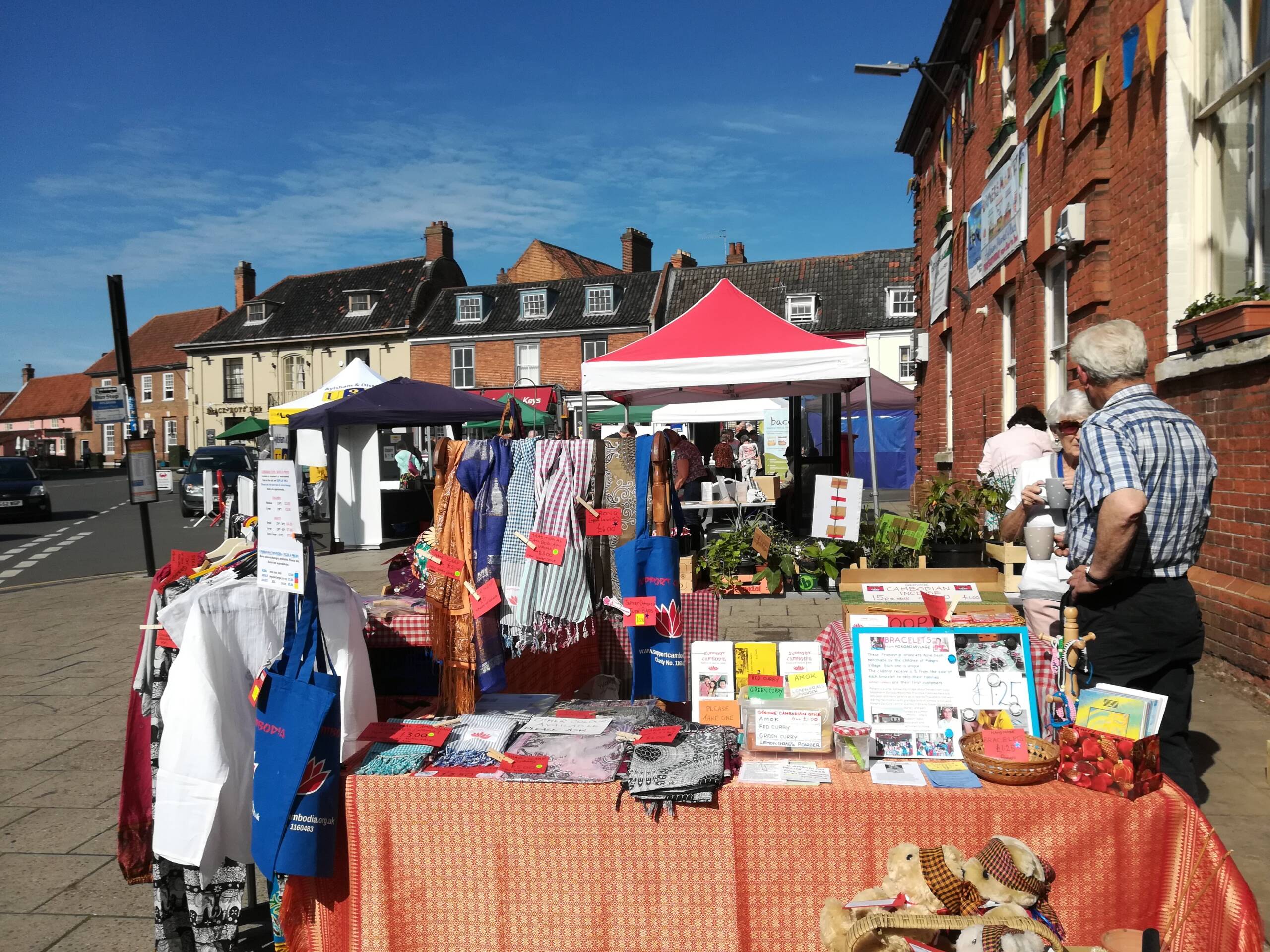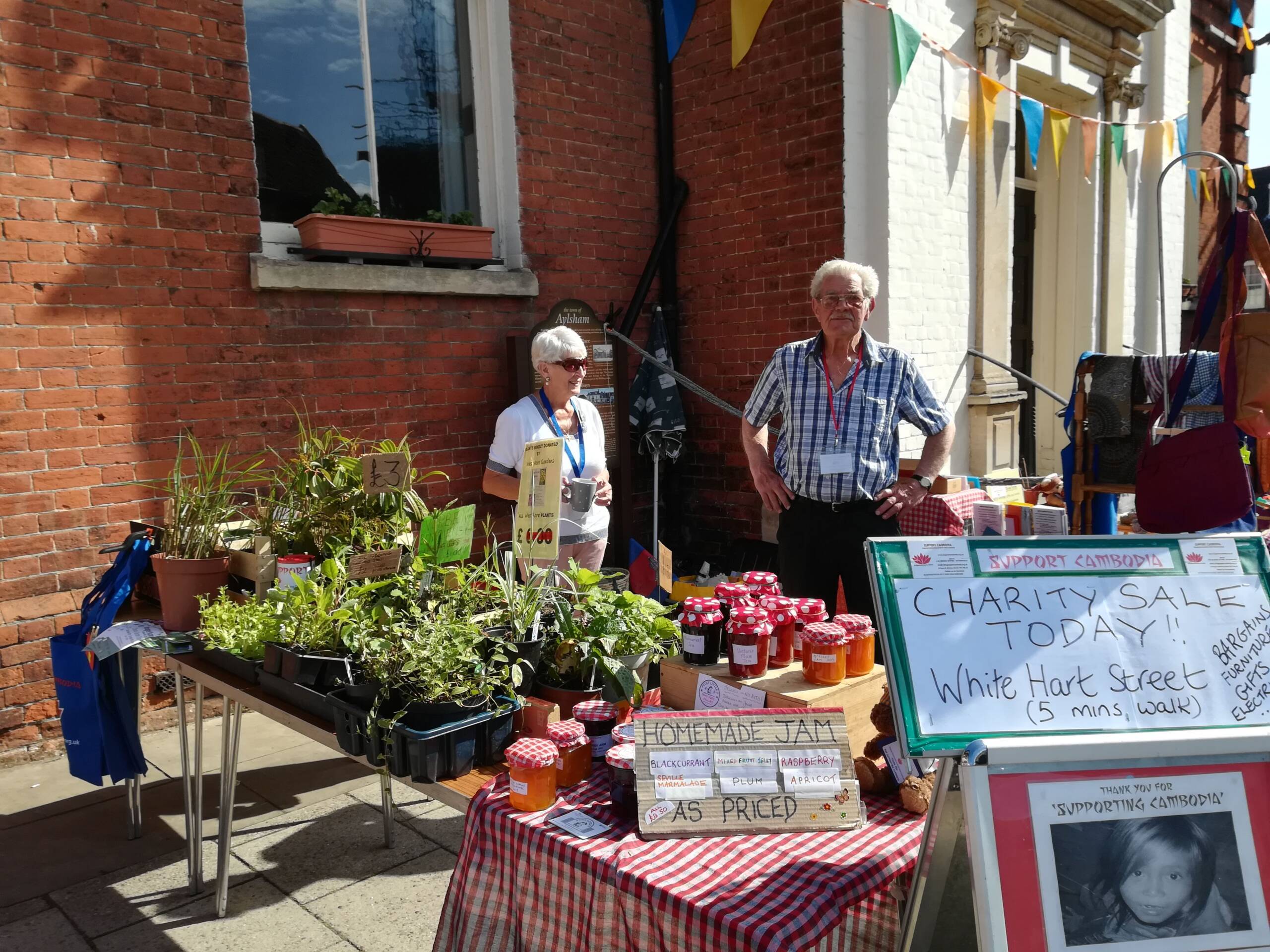 A gloriously hot morning enticed locals and visitors alike to two events in Aylsham on the first weekend in June in aid of Support Cambodia. Cambodian ‘elephant’ trousers, cheesecloth tops, sunhats and hammocks were all popular hot-weather buys at the Table Top in the Market Place while a two-day Charity Sale [courtesy of Jill Kemp] in White Hart Street produced a stream of satisfied people proudly bearing bargains of various shapes and sizes. In total, well over £500 was raised for the Support Cambodia Hygiene Fund which will provide basic necessities for the very poorest families, to be distributed during the Trustee visit in February 2020. Many thanks to all who supported either event and particularly to Jill for a wonderful, solo fundraising effort and to Aylsham in Bloom for their help in promoting the event.