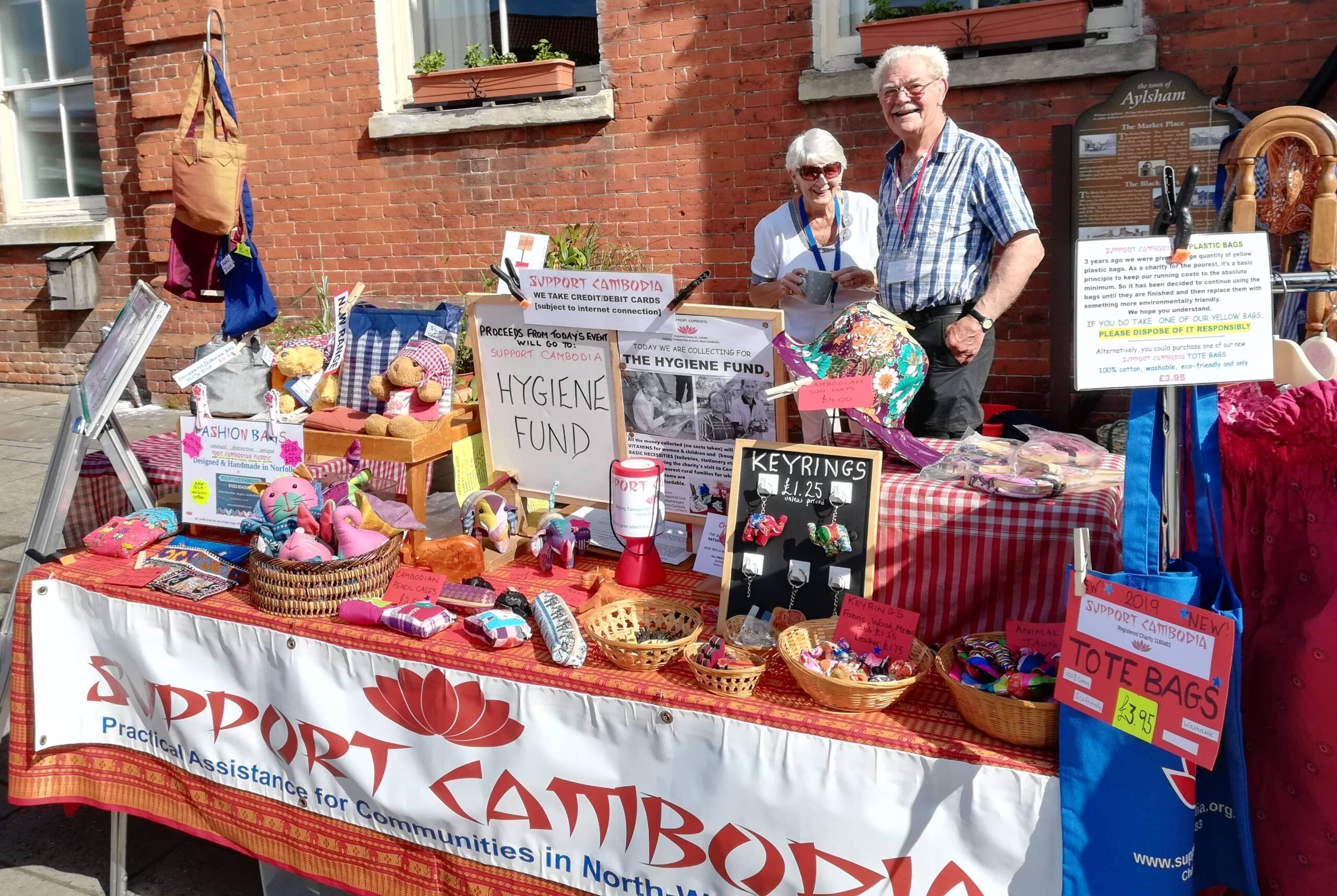 A gloriously hot morning enticed locals and visitors alike to two events in Aylsham on the first weekend in June in aid of Support Cambodia. Cambodian ‘elephant’ trousers, cheesecloth tops, sunhats and hammocks were all popular hot-weather buys at the Table Top in the Market Place while a two-day Charity Sale [courtesy of Jill Kemp] in White Hart Street produced a stream of satisfied people proudly bearing bargains of various shapes and sizes. In total, well  over £500 was raised for the Support Cambodia Hygiene Fund which will provide basic necessities for the very poorest families, to be distributed during the Trustee visit in February 2020. Many thanks to all who supported either event and particularly to Jill for a wonderful, solo fundraising effort and to Aylsham in Bloom for their help in promoting the event.